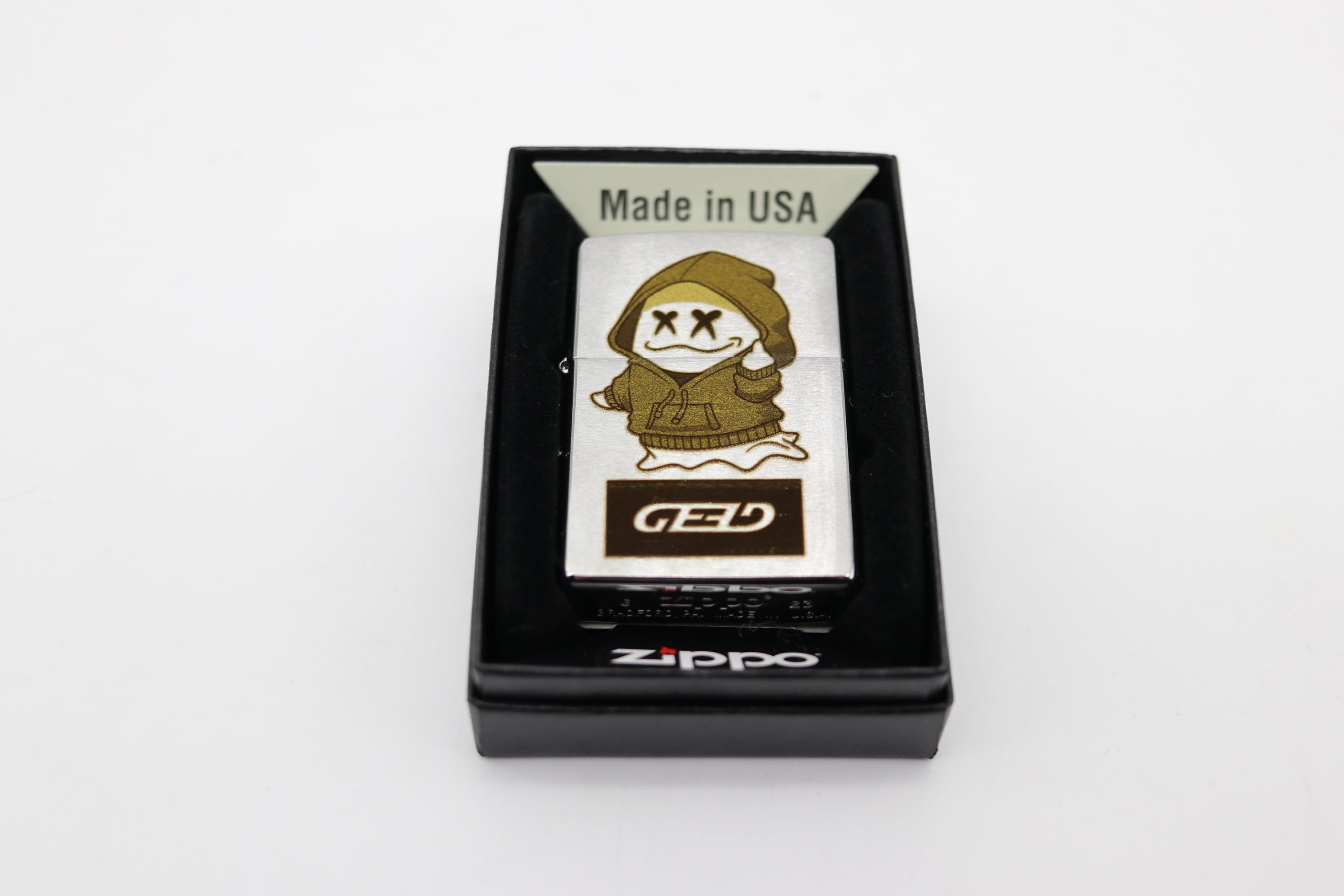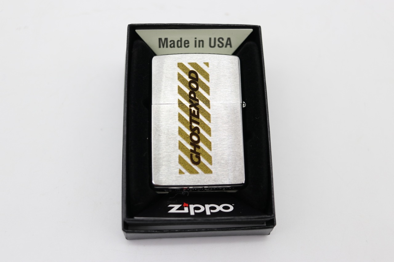 "GhostExpod"のレーザー彫刻が施されたZIPPOです。