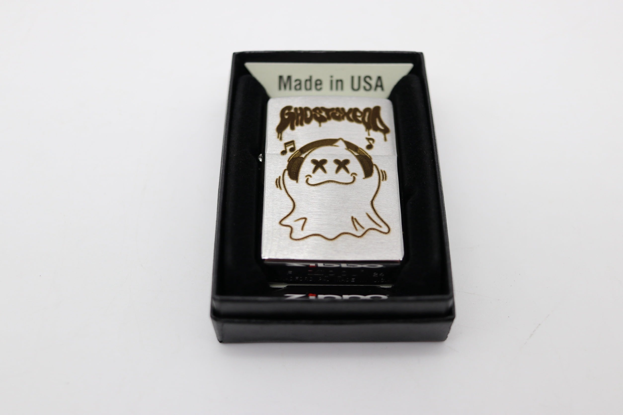 "GhostExpod"のレーザー彫刻が施されたZIPPOです。