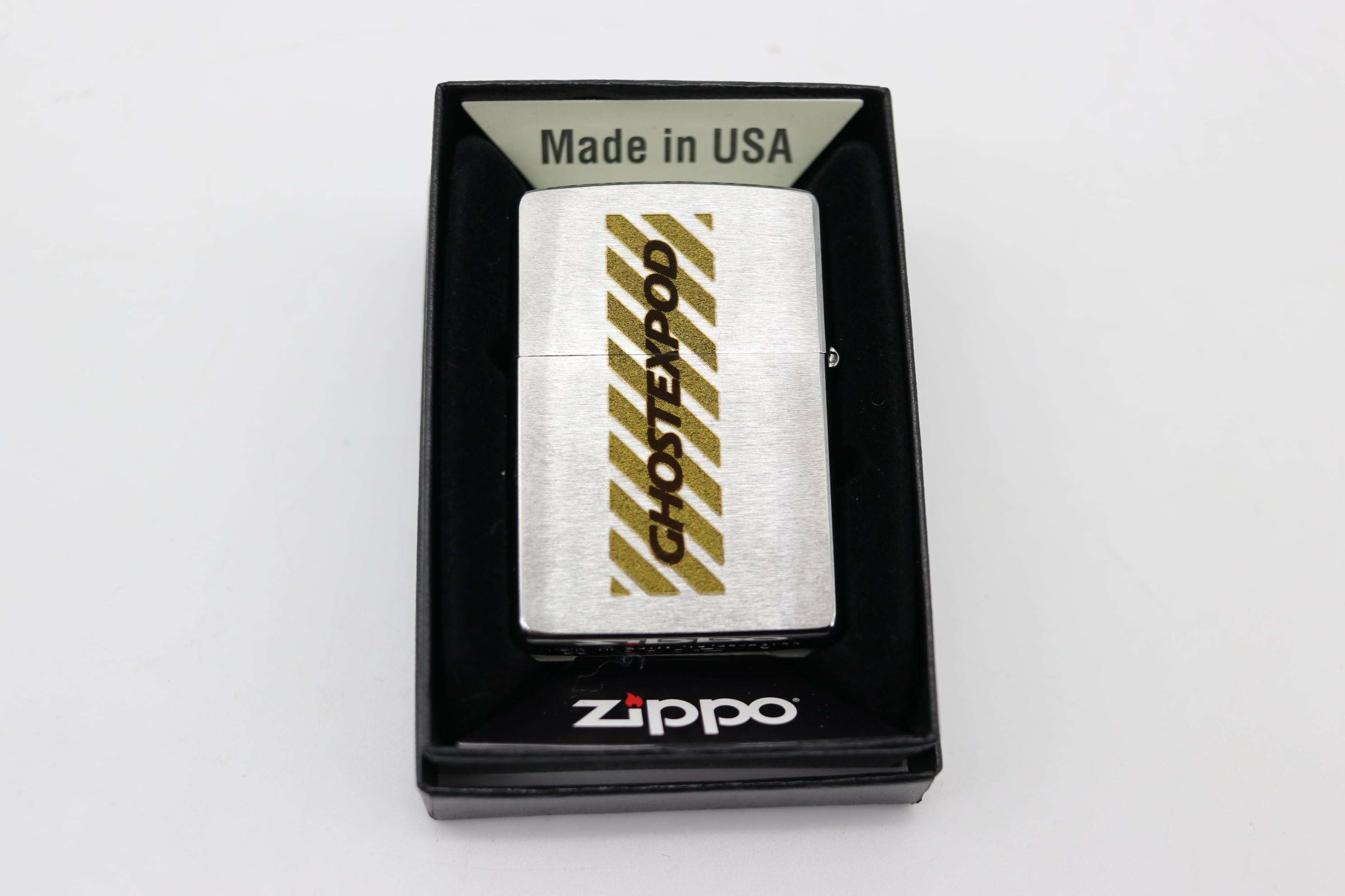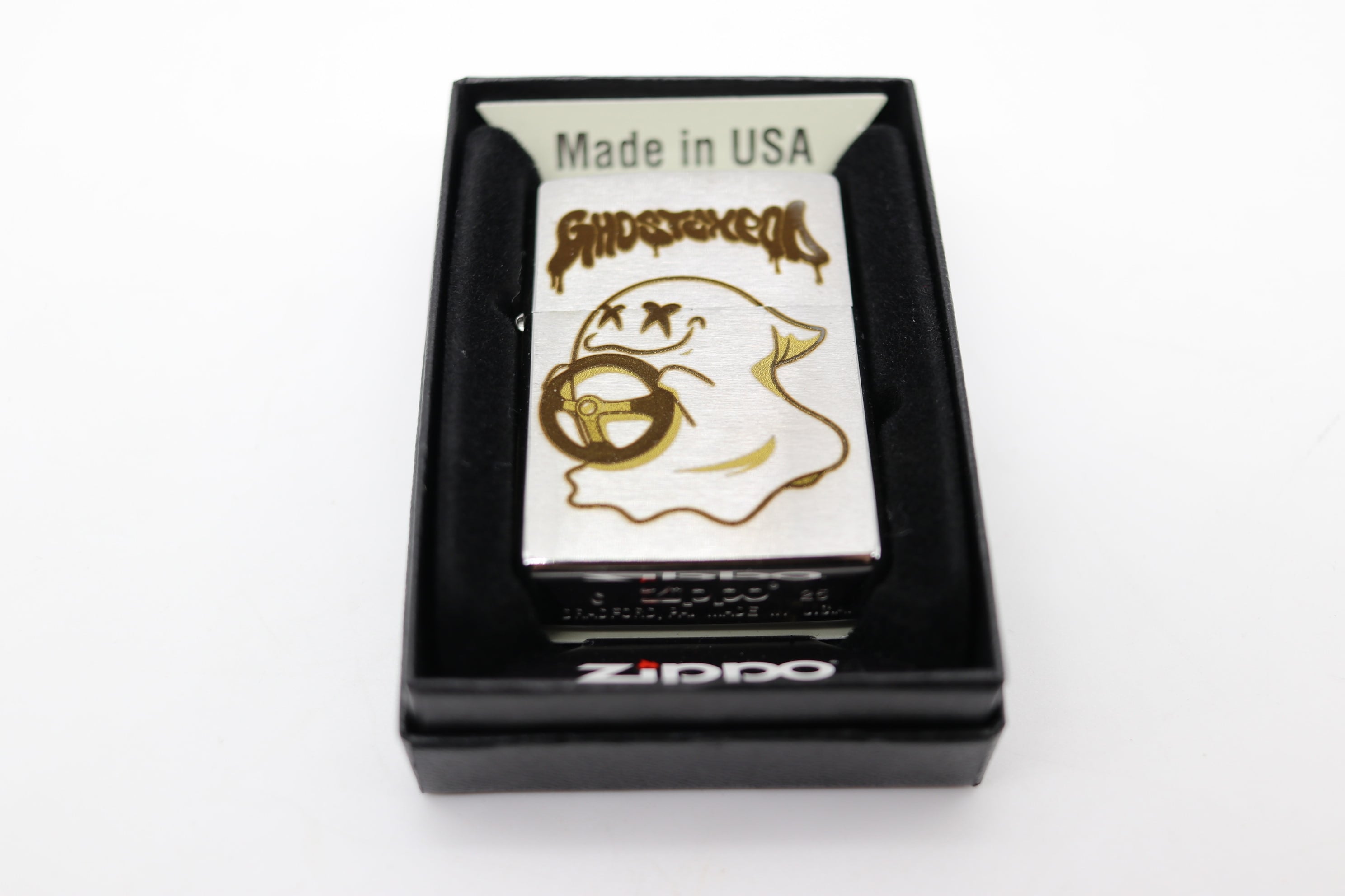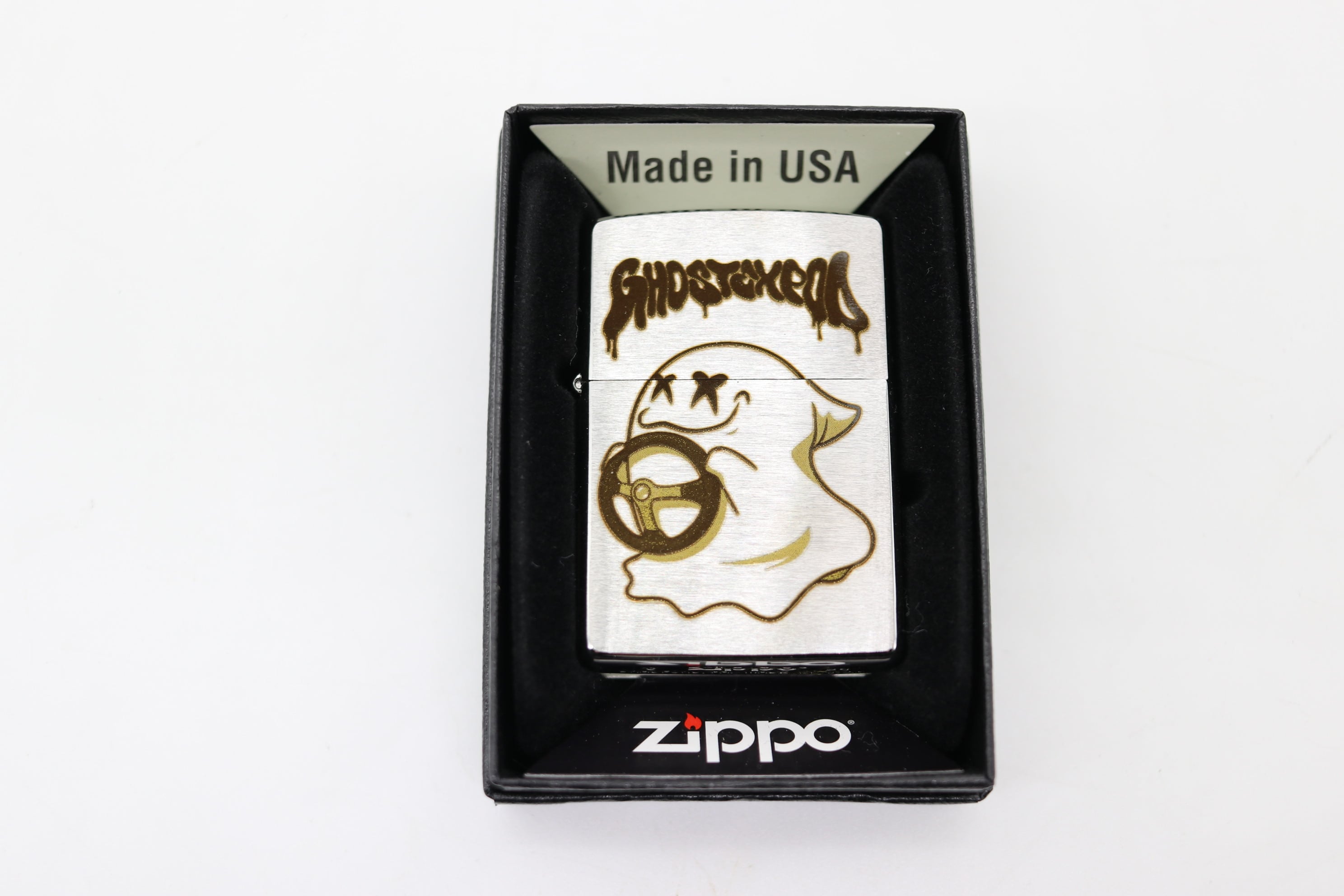 "おばけ"のレーザー彫刻が施されたZIPPOです。