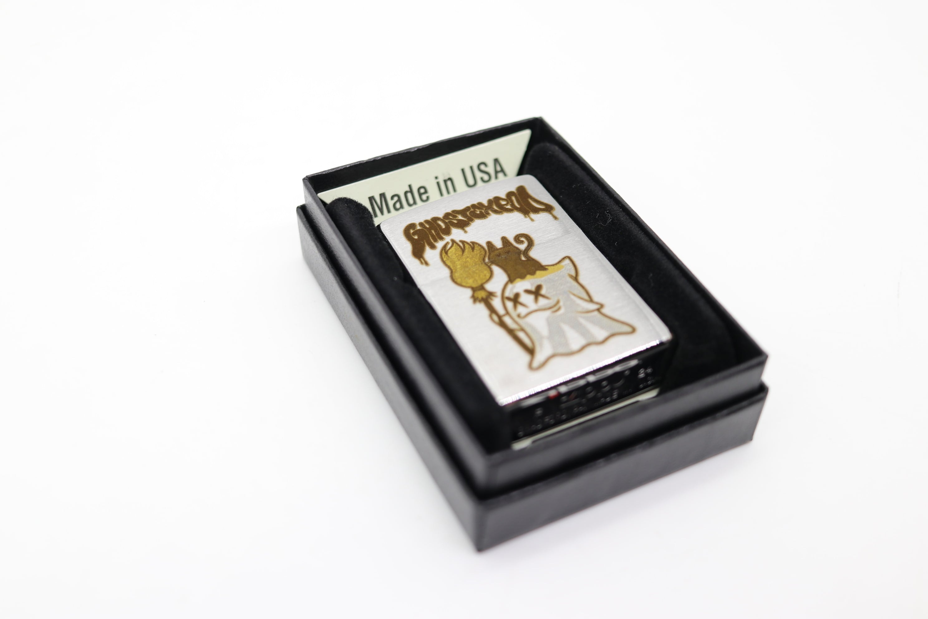 "おばけ"のレーザー彫刻が施されたZIPPOです。