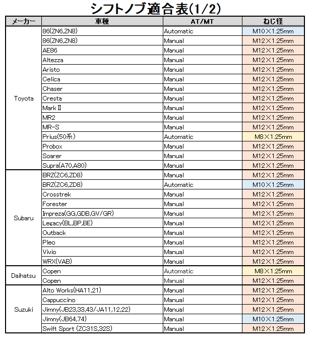 ・86(ZN6)/BRZ(ZC6) アタッチメントM10×1.25