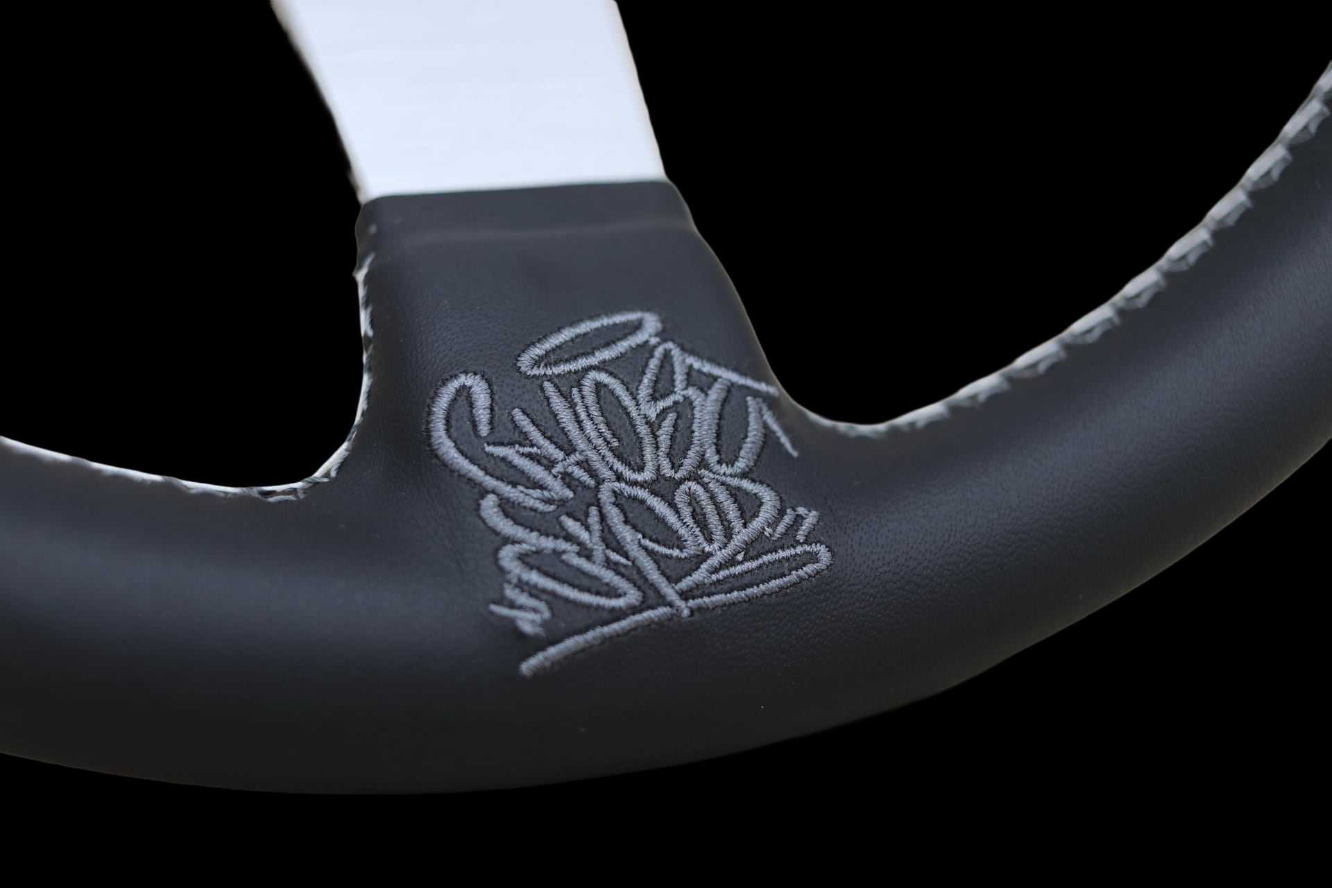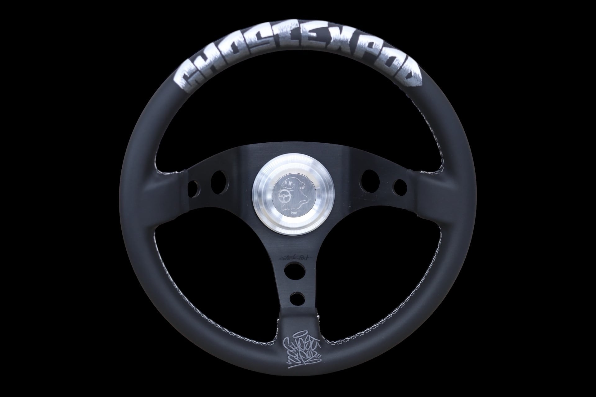 ステアリングのレザーには高品質な日本製バックスキンレザーを使用し、手にしっとりと馴染む仕上がりになっています。