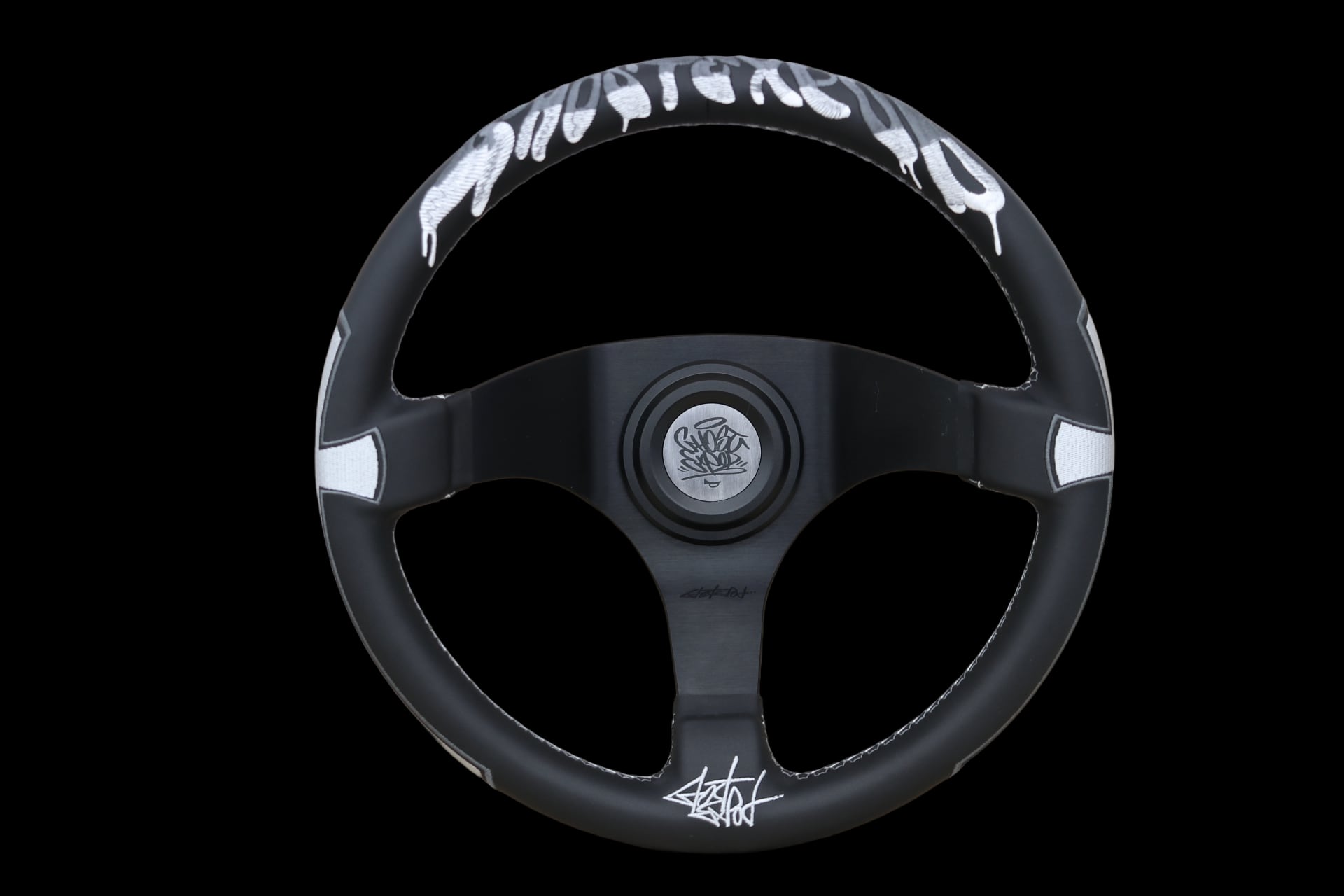 ステアリングのレザーには高品質な日本製バックスキンレザーを使用し、手にしっとりと馴染む仕上がりになっています。